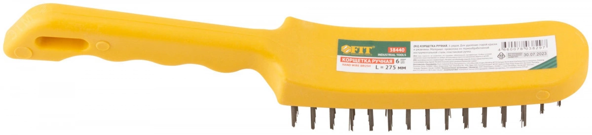 Корщетка стальная, желтая пластиковая ручка, 275 мм, 6-ти рядная
