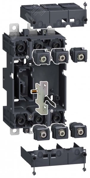Комплект цоколя Schneider Electric для 3-полюсных аппаратов Compact NSX100/160/250. В комплект входит: цоколь, 3 контактных штыря, 2 короткие клеммные заглушки, устройство ударного действия (боек).