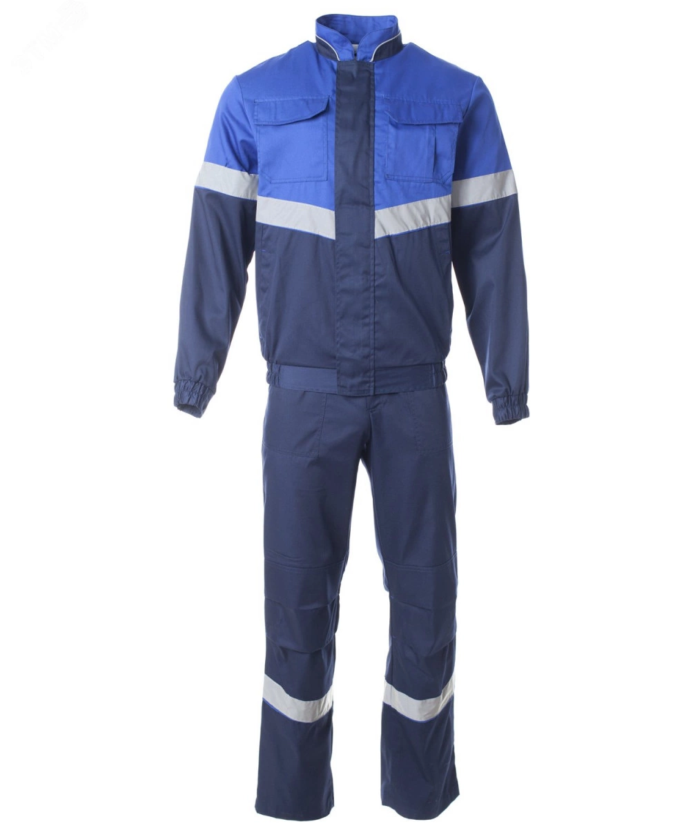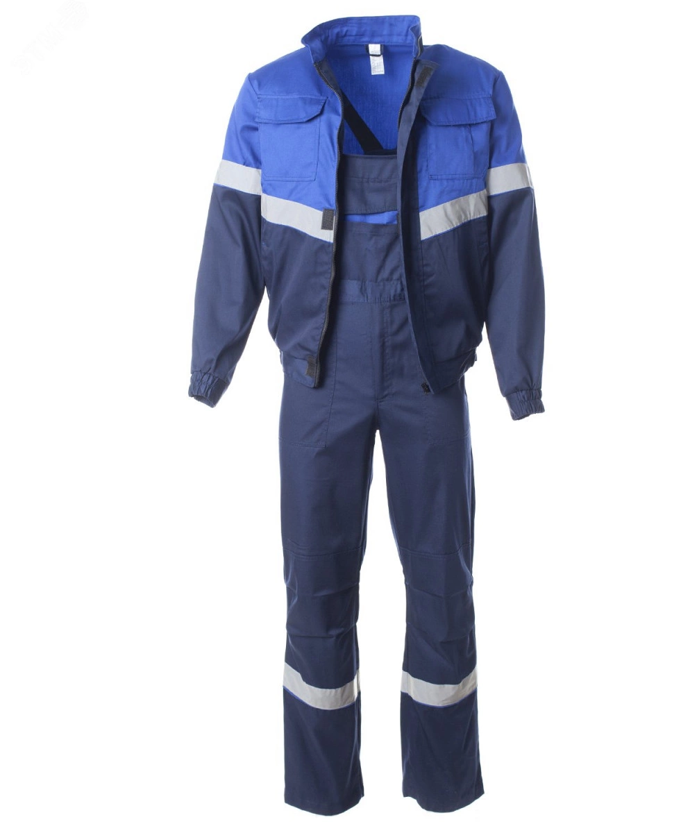 Фигурные накладные карманы и клапана на липучку.Нижние накладные карманы с косым входом.Воротник стойка.Укороченная куртка на поясе с частичной стяжкой на эластичную резинку.Полукомбинезон с различными многофункциональнымиарманами.Эластичная резинка по талии спинки.Застёжка гульфика молнию.В правом боковом шве на пуговицы.Бретели на пластиковых застежках (фастексах), регулируются по длине за счет эластичной резинки.В костюме спользуется световозвращающая лента 50 мм и СВ кант.