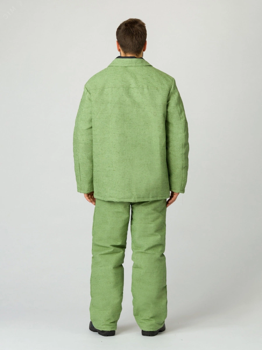 Куртка с центральной супатной застежкой на петли и пуговицы. Брюки прямого силуэта на поясе, костюм утеплен притачной утепляющей подкладкой, рекомендуется для защиты от искр, брызг расплавленного металла.