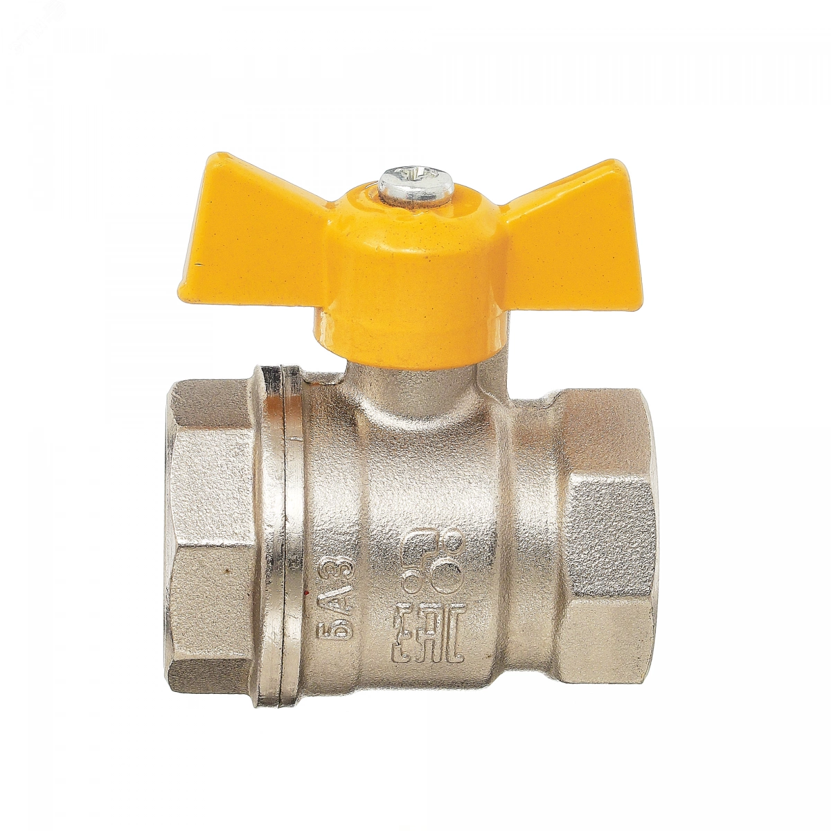 Кран шаровый латунный никелированный 11б27п Ду20 Ру40 (3/4') ВР/ВР бабочка GAS