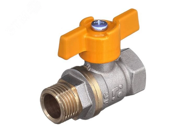 Кран шаровой БАЗ вр/вр бабочка. Латунные шаровые краны 11Б27П предназначены для установки на трубопроводах в качестве запорного устройства для природного газа. Материал корпусных деталей – латунь ЛС59-1 по ГОСТ 15527-2004. Материал шаровой заслонки – латунь ЛС59-1 по ГОСТ 15527-2004 с покрытием Н9Х.Управление осуществляется рычагом или 'бабочкой' из алюминия марки АК-7 ГОСТ 1583-93 с покрытием эпоксиполиэфирной порошковой композицией желтого цвета. Материал уплотнений шара и штока – фторопласт (PTFE).