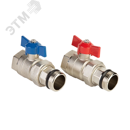 Кран шаровой без термометра 1' со сгоном для коллектора бабочка (2 шт)