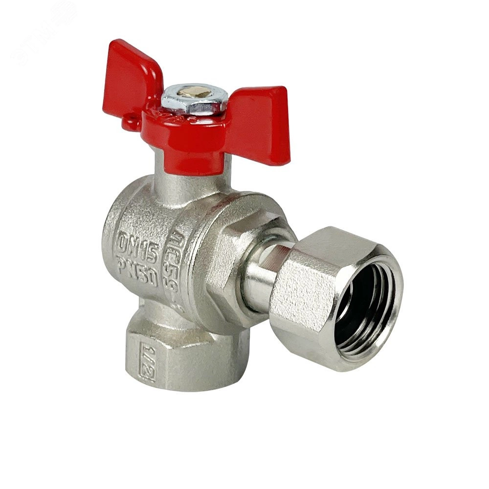 Краны шаровые муфтовые латунные угловые с накидной гайкой на номинальное давление PN 4,0 МПа (40 кгс/см2), PN 5,0 МПа (50 кгс/см2) и PN 6,3 МПа (63 кгс/см2), условного прохода (номинального диаметра) от DN 15 до DN 25, предназначенные для применения в качестве запорной арматуры в составе водопроводов хозяйственно-питьевого назначения, горячей воды, пара, сжатого воздуха и в технологических трубопроводах, транспортирующих жидкости, не агрессивные к материалам крана.