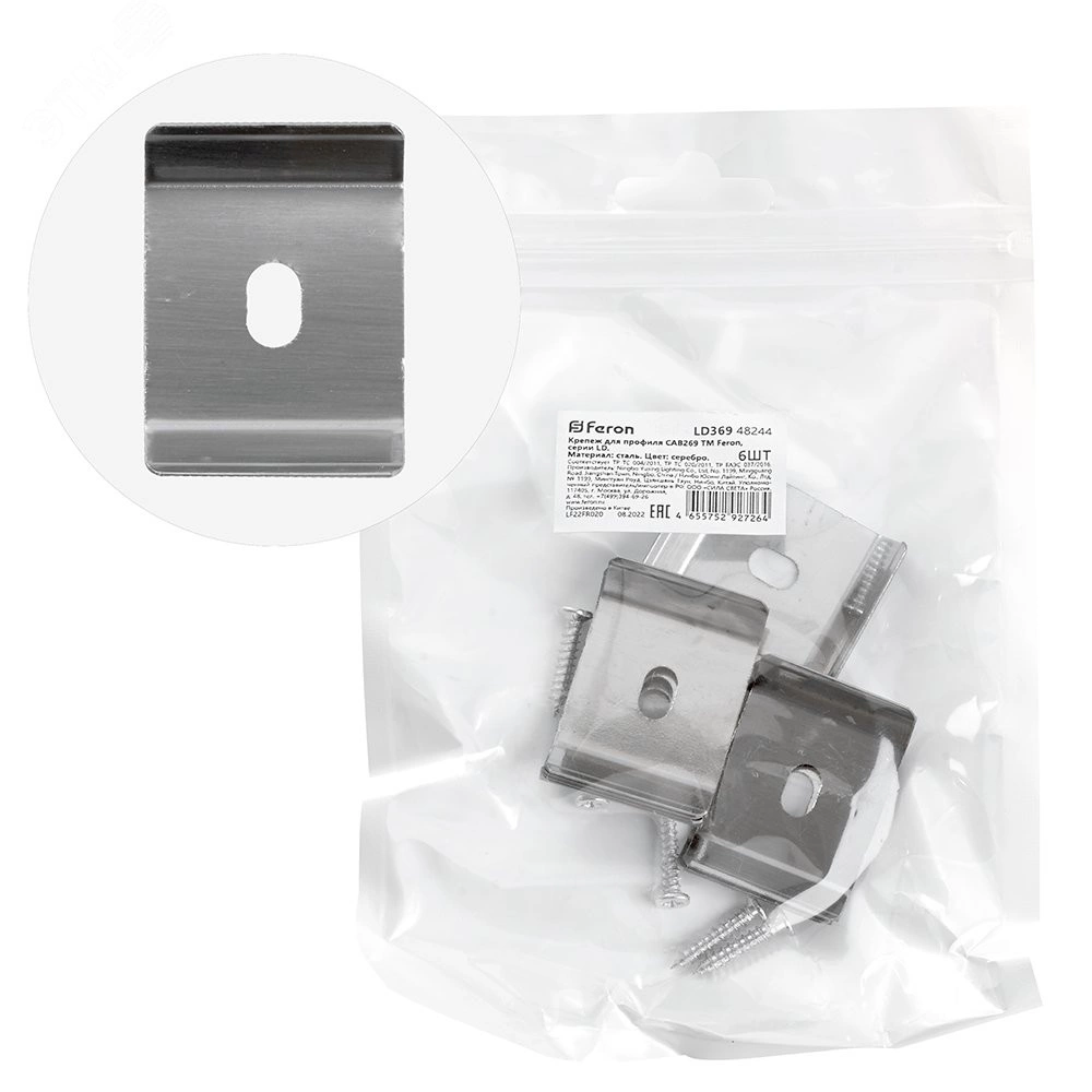 Крепеж стальной (упаковка из 6шт) используется для дополнительного крепежа профиля САВ269 Feron.