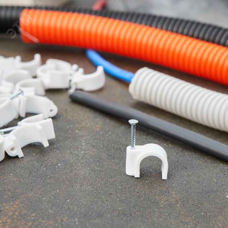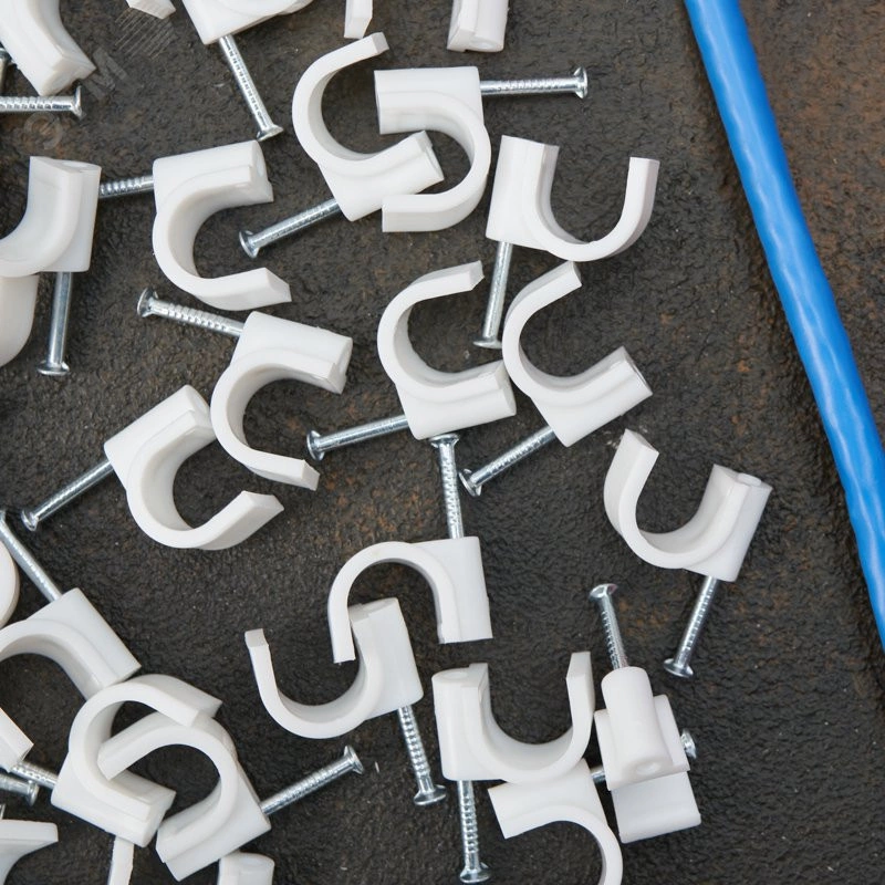 Круглый крепеж 12 мм с гвоздем предназначен для фиксации круглого кабеля к деревянной поверхности. Такой крепеж будет особенно полезен для использования на даче или в частном деревянном доме. Представляет собой дугообразную скобу белого цвета, выполненную из качественного пластика, с гвоздем в специальном отверстии. Скоба используется для мгновенного и надежного крепления проводов и кабелей к поверхностям стен, несущих конструкций и потолков. Гвоздь выполнен из закаленной стали, что позволяет закрепить его даже в плотной и твердой древесине без риска погнуть или сломать.