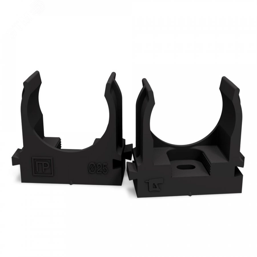 Крепеж-клипса для труб для прямого монтажа черная в гофроящике d25 мм (900шт/кор)