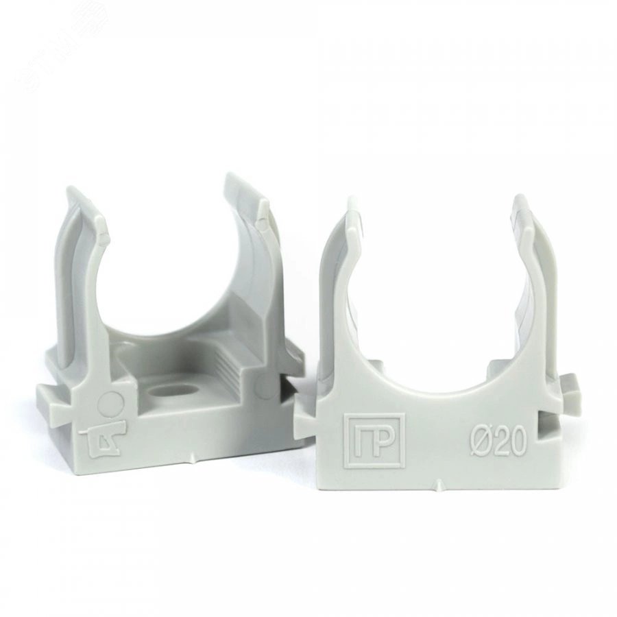 Крепеж-клипса для труб для прямого монтажа серая в гофроящике d20 мм (1200шт/кор)