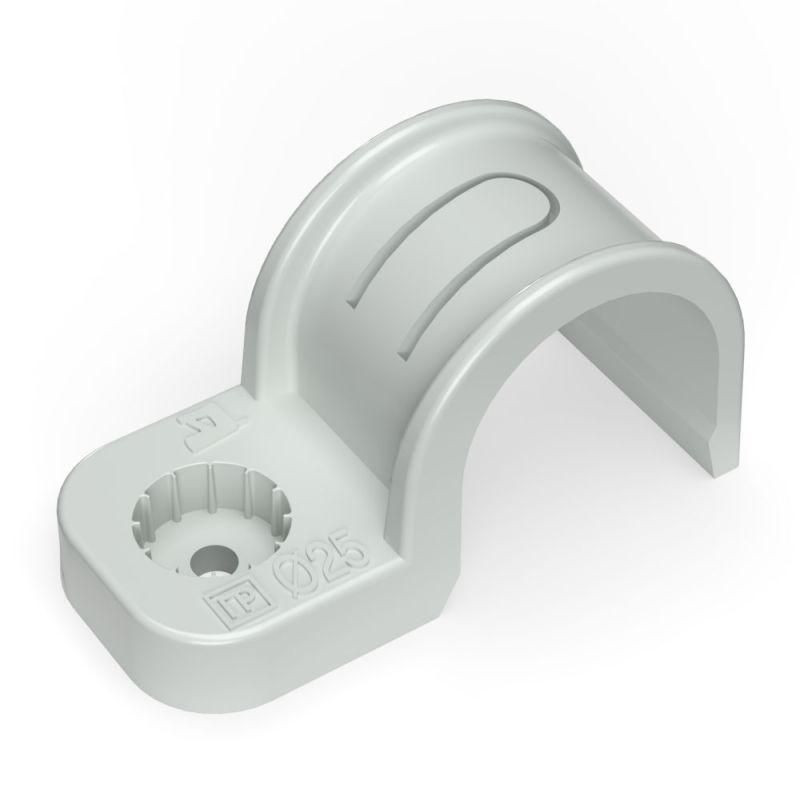 Полное описание: Крепеж-скоба односторонняя d25мм для прямого монтажа атмосф. пластик. в п/э сер. (уп.50шт) Промрукав PR13.0370