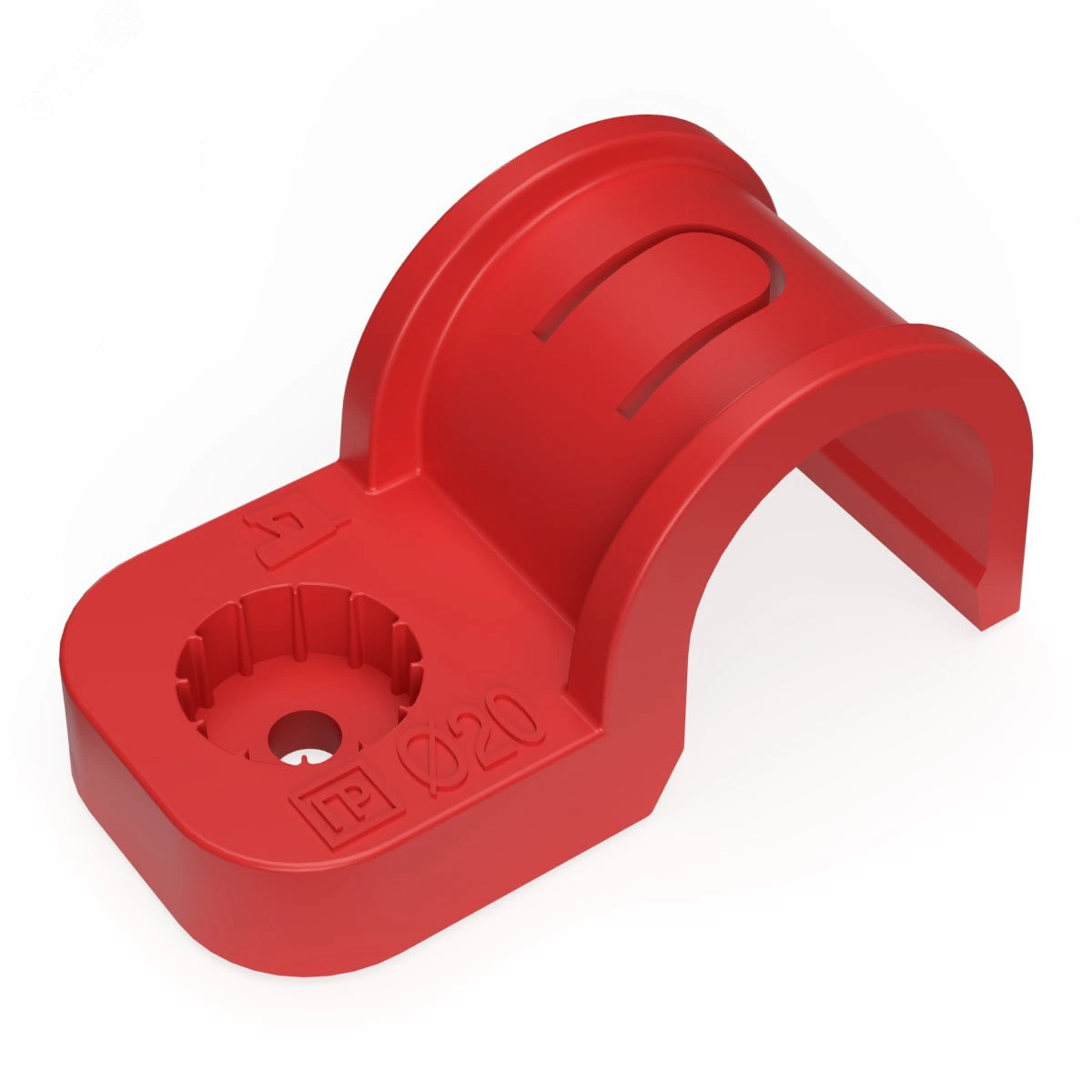 Крепеж-скоба пластиковая односторонняя для прямого монтажа атмосферостойкая красная в п/э d20 мм (50шт/600шт уп/кор) Промрукав