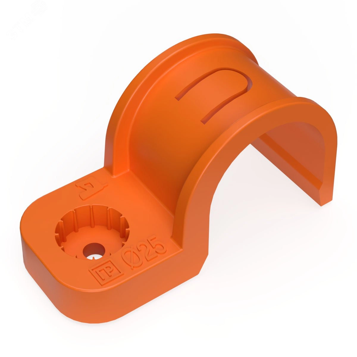 Крепеж-скоба пластиковая односторонняя для прямого монтажа атмосферостойкая оранжевая в п/э d25 мм (50шт/450шт уп/кор) Промрукав