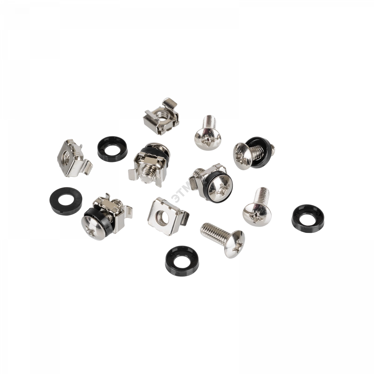 Крепежный комплект предназначен для установки оборудования на монтажные направляющие телекоммуникационных шкафов и стоек. Крепежный комплект состоит из закладной гайки, винта и пластиковой шайбы. Крепежный комплект можно использовать в любом оборудовании, выполненном в 19'' стандарте.