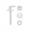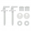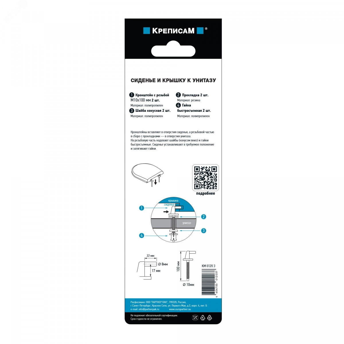 Кронштейны вставляют в отверстия сиденья, а резьбовой частью в сборе с прокладками в отверстие унитаза. На резьбовую часть надевают шайбы (конусом вниз) и гайки быстросъемные. Сиденье устанавливают в требуемое положение и затягивают гайки.