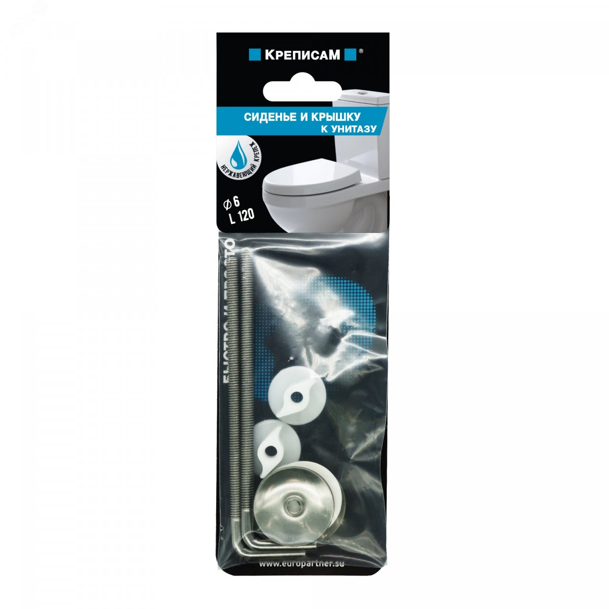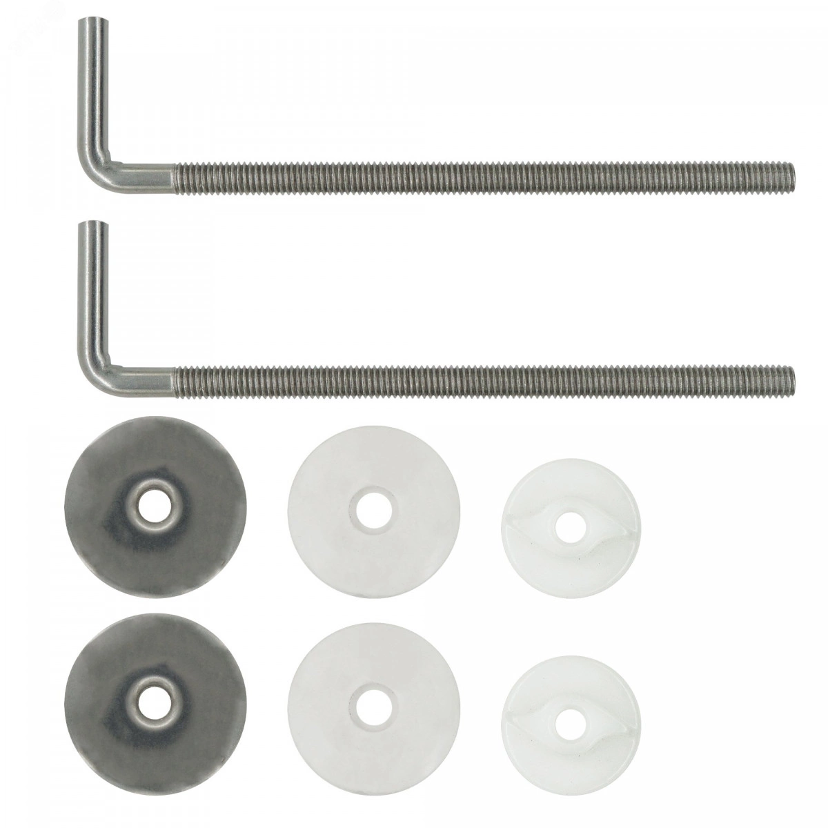Комплект расчитан на применение в местах с высокой влажностью, поэтому в состав входят нержавеющие кронштейны и шайбы. Кронштейн нержавеющий с резьбой 6х120 2шт, Шайба нержавеющая регулировочная 2шт, Прокладка 2шт, Гайка-барашек 2шт Рекомендация по установке: Кронштейны вставляют в отверстия сиденья, а резьбовой частью в сборке с прокладками и регулировочными гайками в отверстия унитаза. На резьбовую часть накручивают гайки. Сиденье устанавливают в требуемое положение и затягивают гайки.