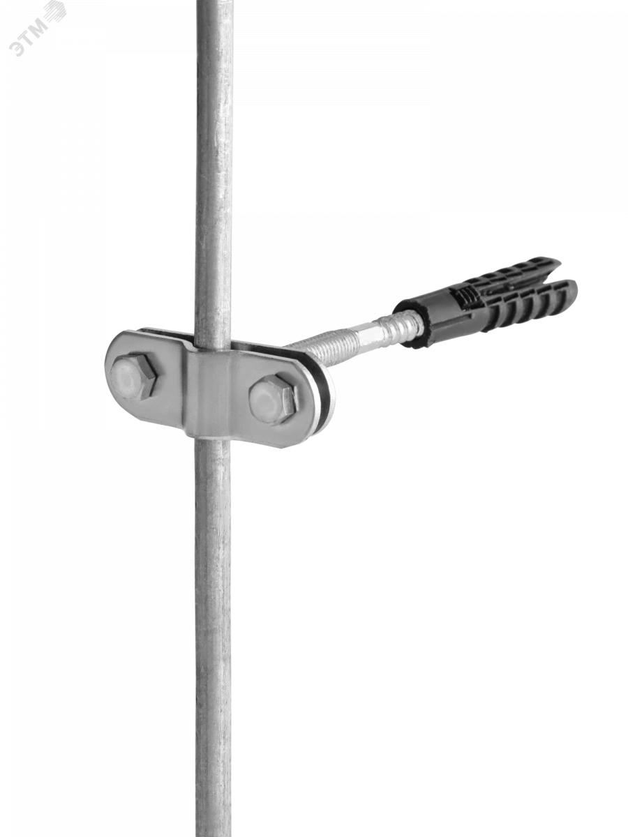 Держатель молниеприемника выполнен из оцинкованной стали. Предназначен для крепления молниеприемника 16…20 мм к вертикальной конструкции здания. Вынос держателя 400 мм. В комплект входит пластиковый дюбель.