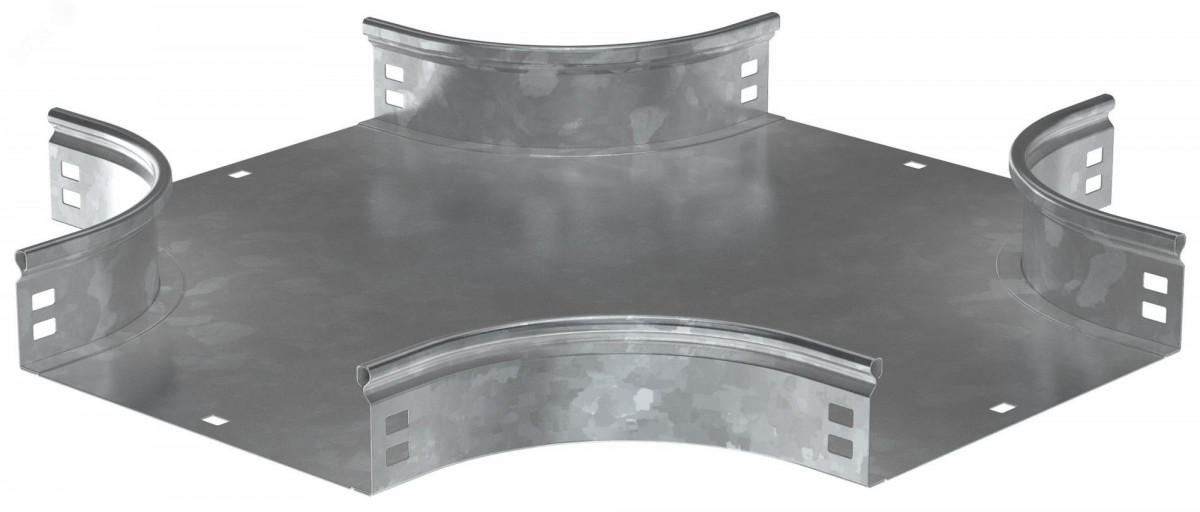 Крестовина плавная предназначена для организации X-образного ответвления кабельной трассы. Крышка аксессуара в комплект не входит.Аксессуар изготовлен из стали с цинковым покрытием, нанесенным погружением изделий в расплав цинка (защитный слой цинка не менее 55 мкм).