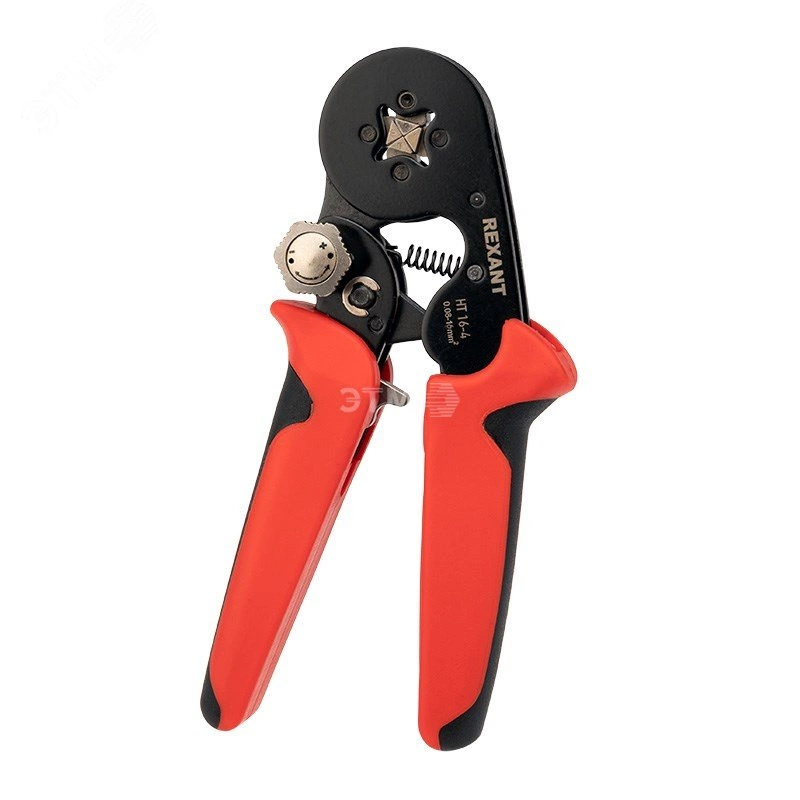 Кримпер REXANT HT 16-4 предназначен для опрессовки, практически, всего ряда штыревых наконечников в диапазоне 0.08-16.0 мм2. Четырехсегментная саморегулирующая матрица с системой поворотных кулачков диафрагменного типа выполняет квадратный профиль обжима с рифлением. Есть настройка давления опрессовки и принудительно размыкающаяся блокировка, которая не позволяет разойтись рукояткам до полной опрессовки и контролирует качество контактного соединения. Кримпер дополнен регулятором прижимного усилия с 6 положениями (для опрессовки наконечников малых сечений на провода 0.08–6 мм2 (выполняется поворот против часовой стрелки), для опрессовки наконечников больших сечений на провод 10 и 16 мм2 (выполняется поворот по часовой стрелке). Инструмент перекрывает диапазон обжима из 18 размеров втулочных наконечников.