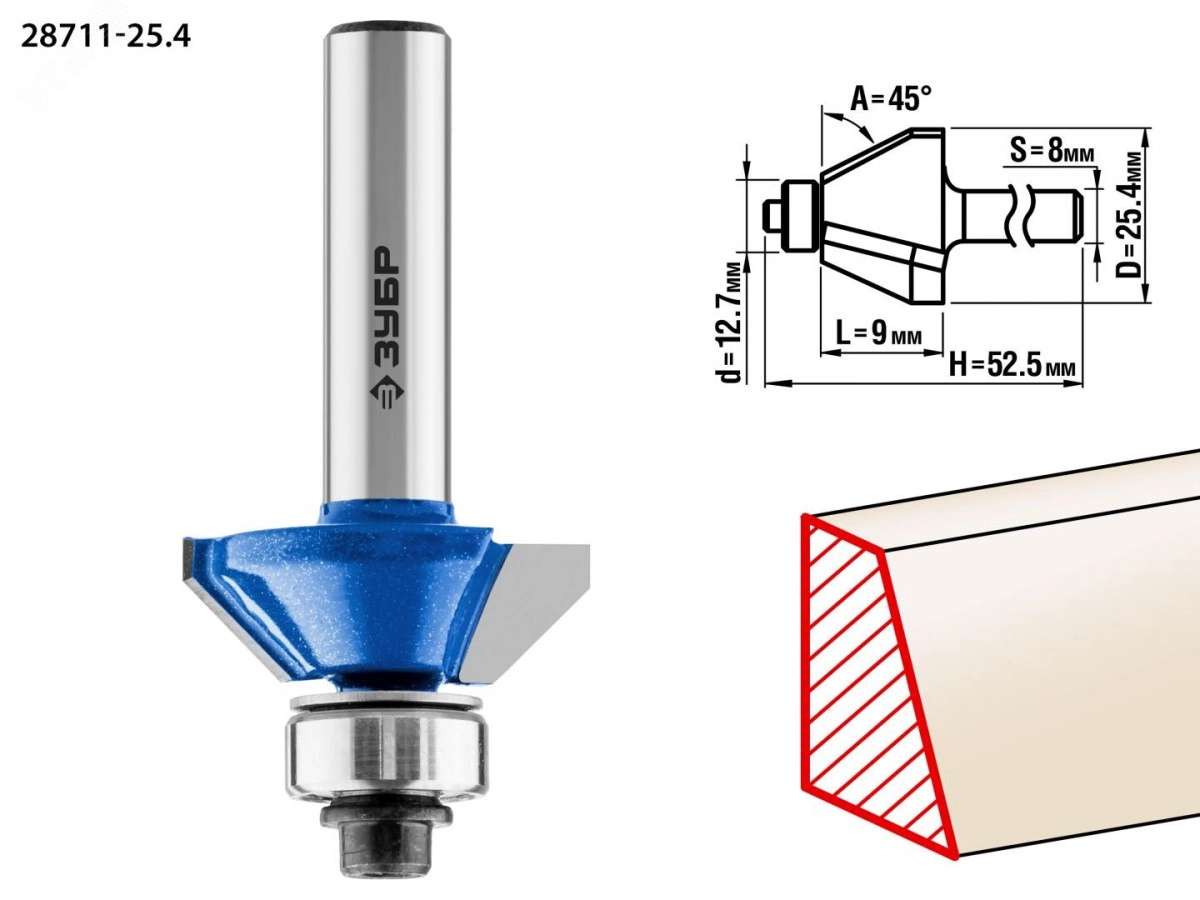 Кромочная калевочная фасочная фреза Профессионал №9, 25.4x8 мм