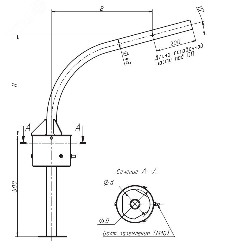 Кронштейн на опору с 2 хомутами 625*460*280, SPP-AC4-0-350-048 d 48 (6/48)