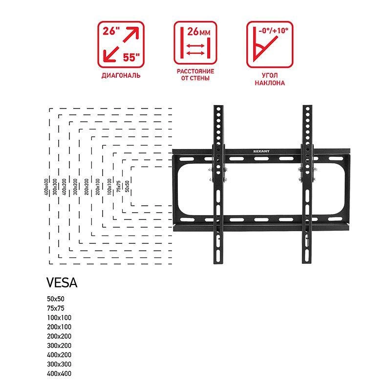 Расстояние от стены до кронштейна: 26 мм