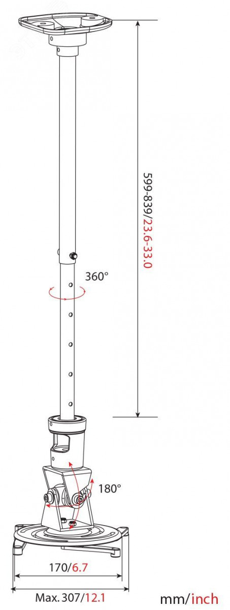 Кронштейн для проектора CS-VM-PR01L-AL — стильное и функциональное решение для установки проектора на потолок. Он обеспечивает удобный поворот и наклон проектора, позволяя настроить оптимальное изображение на стене или потолке. Максимальная нагрузка составляет 10 кг, что подходит для большинства моделей проекторов. Серебристый цвет кронштейна прекрасно сочетается с интерьером и добавляет изысканности.