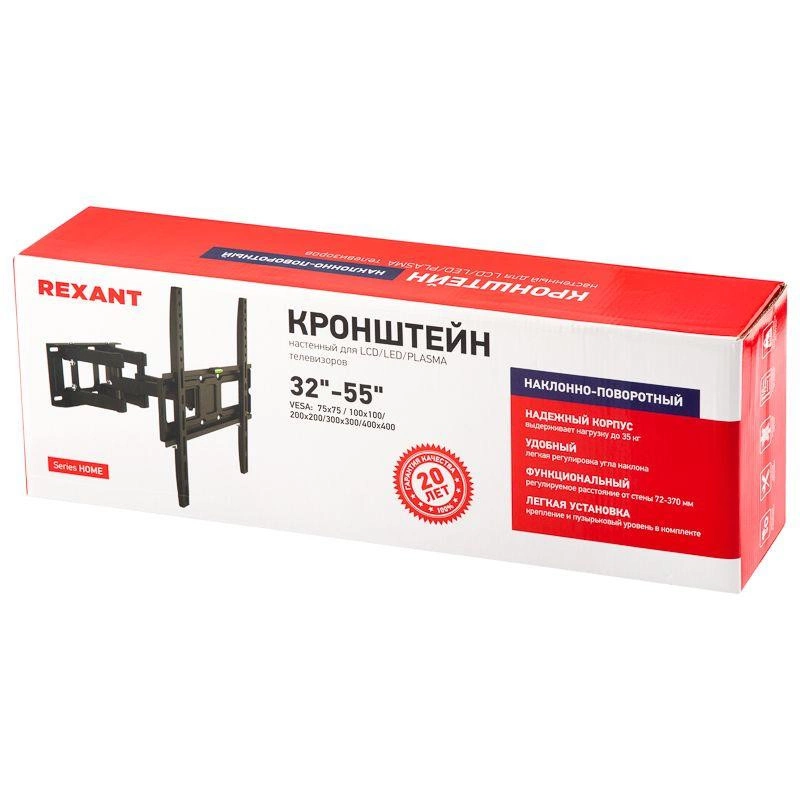 Кронштейн для телевизора 32-55 дюймов наклонно-поворотный двойное колено HOME Rexant 38-0334