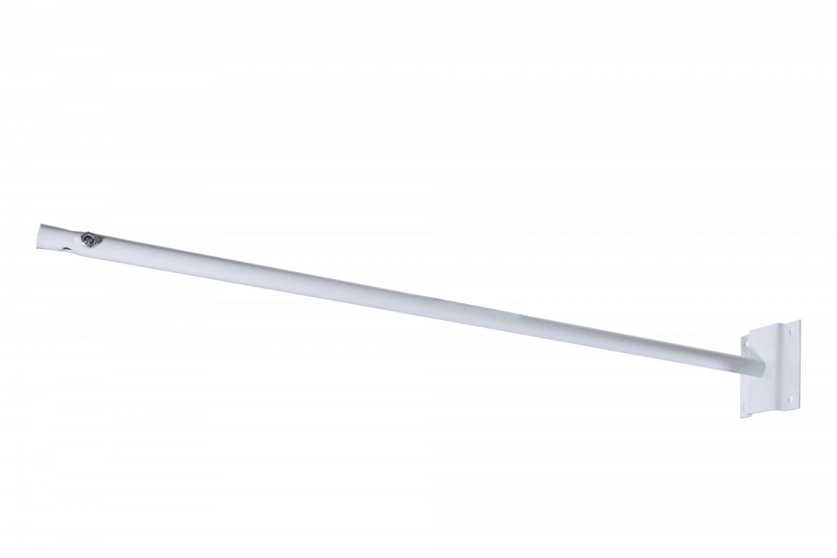 Кронштейн, штанга предназначена для установки прожекторов, светильников и других изделий имеющих отверстие или резьбу для крепления с помощью болта М6 и гайки,входящими в комплект. Вес светильника не должен превышать двух килограмм и площадь сечения до 25 см.кв. в самом широком месте. Устанавливается на вертикальные поверхности (стены, рекламные щиты и т.д.) с помощью стандартного крепежа. Подвод провода осуществляется через отверстие в П образном основании и трубу. Изготавливается из стали с полимерным покрытием. Имеет достаточную жесткость, чтобы выдерживать ветровые нагрузки.