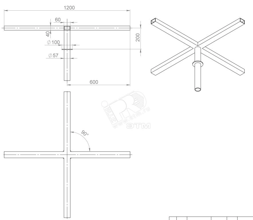 Полное описание: Кронштейн прожекторный Т-образный КТ-0.2-1.2/1.2-0.075 горячеоцинкованный