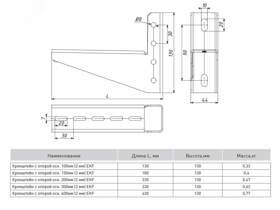 Кронштейн с опорой основание 300мм (2мм) HDZ