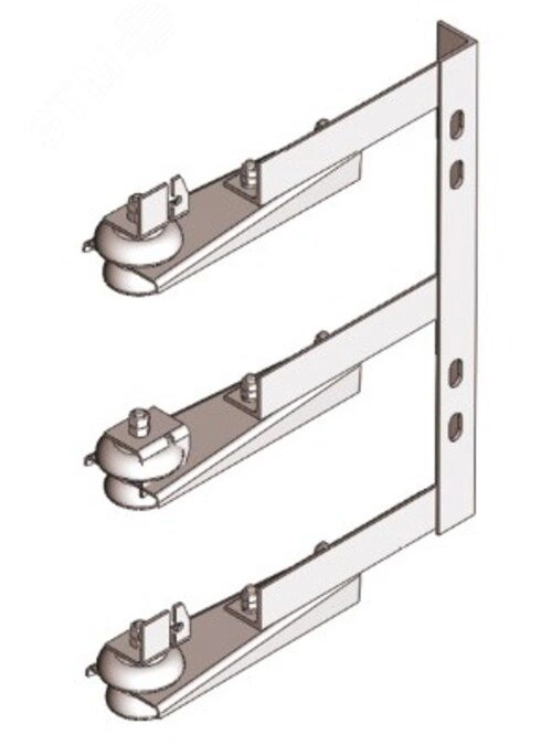 Кронштейн троллейные предназначены для монтажа главных троллейных линий напряжением до 660В переменного тока частотой 50Гц и 60Гц и 500В постоянного тока, питающих мостовые краны. К железнобетонным подкрановым балкам кронштейны крепятся шпильками К38Б, к металлическим - болтами или сваркой. Каркасы кронштейнов изготавливаются из стали с лакокрасочным покрытием.
