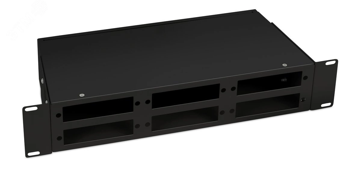 Полное описание: Кросс бокс оптический 19'' 2U на 6 адаптерных панелей. цвет черный