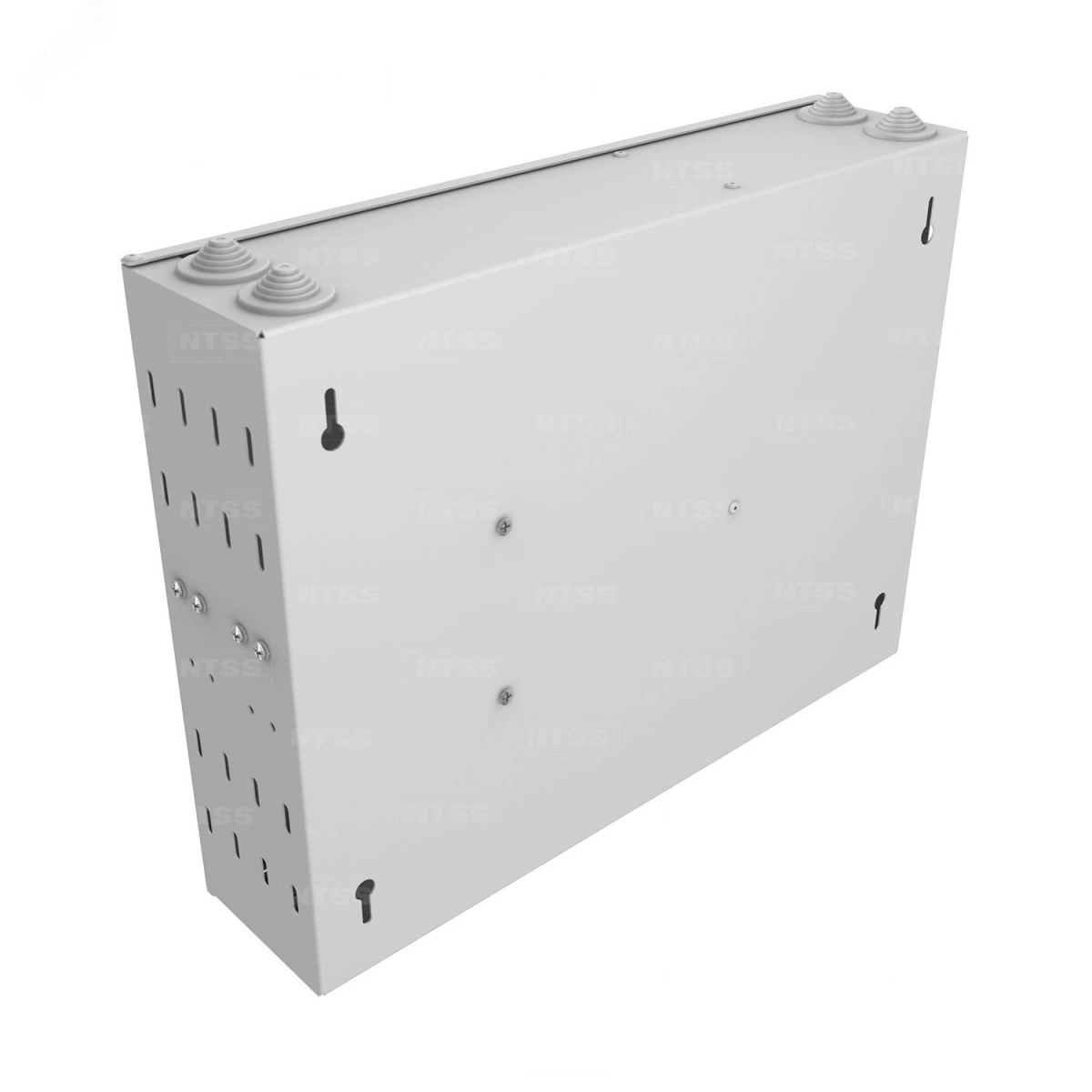 Кросс оптический настенный предназначен для оконцовки оптического кабеля и коммутации с внешними устройствами через оптические адаптеры. Кросс оптический NTSS-WFOB предназначен для монтажа на стену. Настенные оптические кроссы под планки изготавливаются трёх размеров, до 16 портов под 2 планки, до 48 портов под 2 планки 24 порта, до 96 портов под 12 планок на 8 портов. Для ввода кабеля имеются отверстия сверх и снизу кросса, с торца кросса расположены отверстия для крепления вводимого кабеля и центрального силового элемента. Для монтажа сплайс кассет в кроссе есть несъемные шпильки с гайками барашками. Настенные кроссы могут закрываться на ключ. Кроссы могут быть изготовлены в сером и черном цвете. Под заказ можно изготовить кроссы любого цвета.