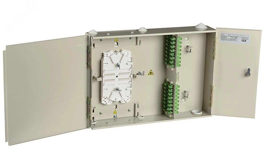 Настенные кроссы серии ШКОН-СТ предназначены для размещения в офисах, аппаратных, помещениях связи и др. обслуживаемых помещениях. Емкость кроссов ШКОН-СТ - 8 ... 32 портов SC, FC или ST. При использовании соединителей LC емкость удваивается. Оптические кабели разделываются и фиксируются в зоне ввода. Далее волокна в модулях поступают на кассеты для сварки с пигтейлами. Адаптеры устанавливаются на сменных планках на 4 ... 8 отверстий под адаптеры SC/LC или ST/FC.