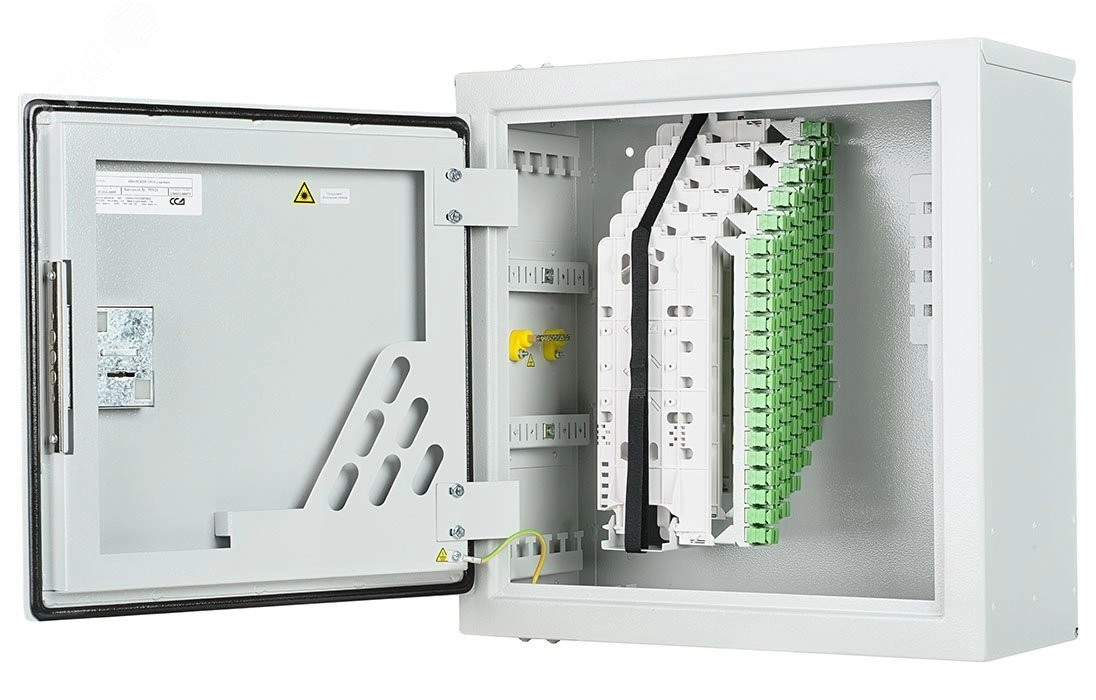Оптический распределительный шкаф (ОРШ) серии ШКОН-КПВ предназначен для использования в многоквартирных жилых домах при строительстве городских сетей абонентского доступа по технологии FTTH (PON) - 'волокно-в-квартиру'. Антивандальное пылевлагозащищенное исполнение шкафа позволяет размещать его непосредственно в подъезде, в подвале, техническом этаже или на чердаке. Конструктивной особенностью кросса является то, что монтаж и кросс-коммутация ОВ осуществляется в откидных кроссовых модулях, объединенных в кроссовый блок. Подобная компоновка кроссового поля является оригинальной разработкой ССД и получила название - система 'книжка'. Откидные кроссовые модули позволили значительно уменьшить габариты шкафа, особенно его глубину. При этом общее количество портов увеличилось.