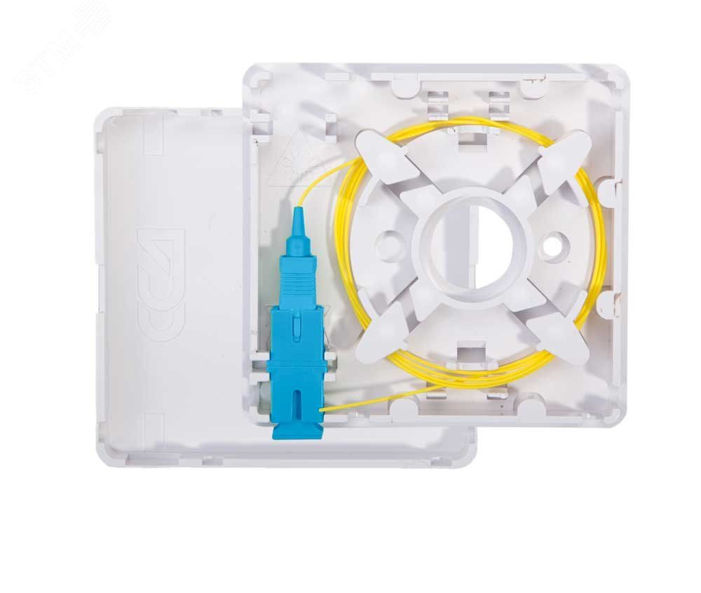 Кросс-розетка предназначена для размещения в офисах и жилых помещениях. Оптический кабель разделывается и фиксируется на основании корпуса. Волокно сваривается с пигтейлом, КДЗС закрепляется в ложементе. Возможно использование механических соединителей типа Fibrlok. Адаптер устанавливается в одно из посадочных мест на основании корпуса.