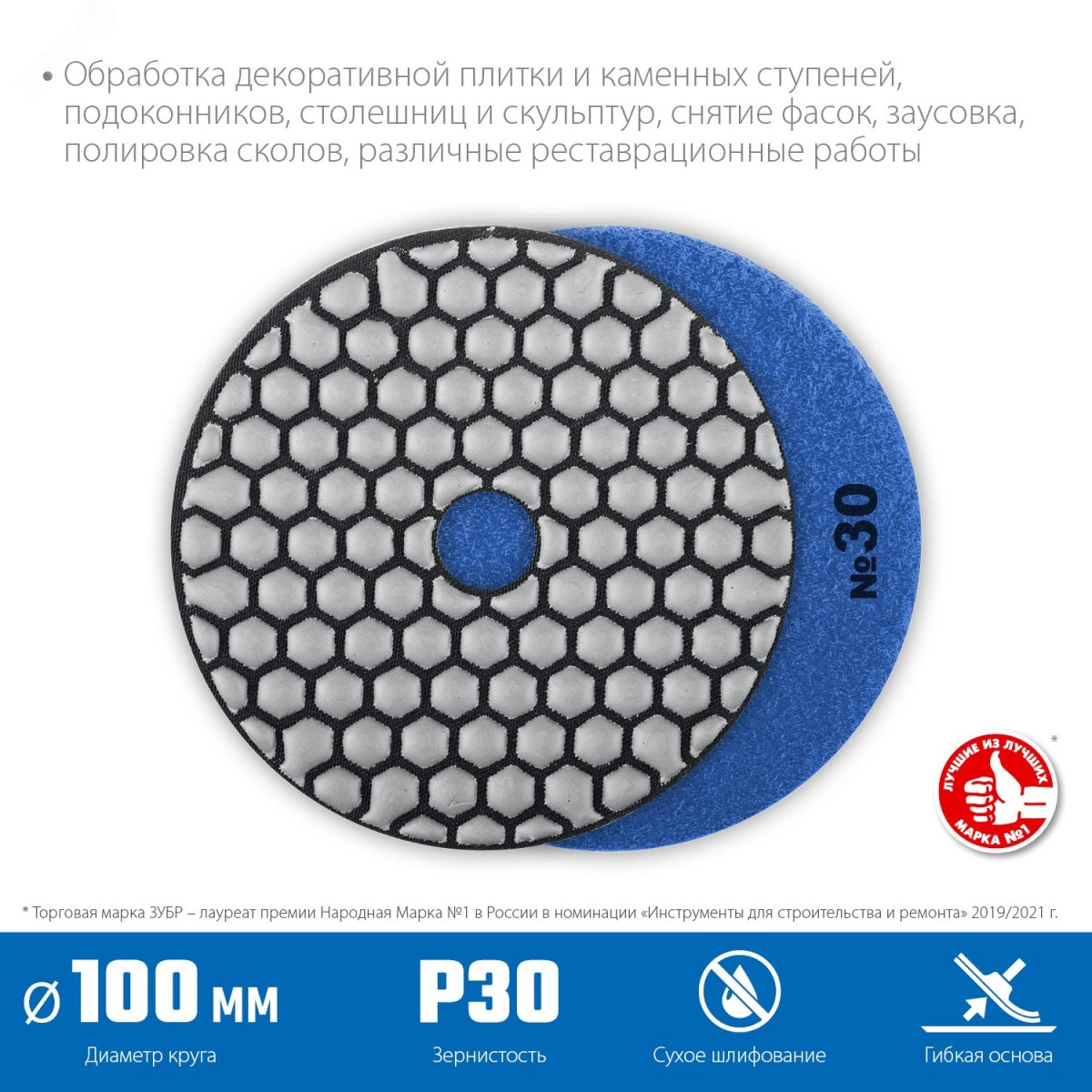 Круг алмазные гибкий шлифовальный (Черепашка) для сухого шлифования, 100мм, №30