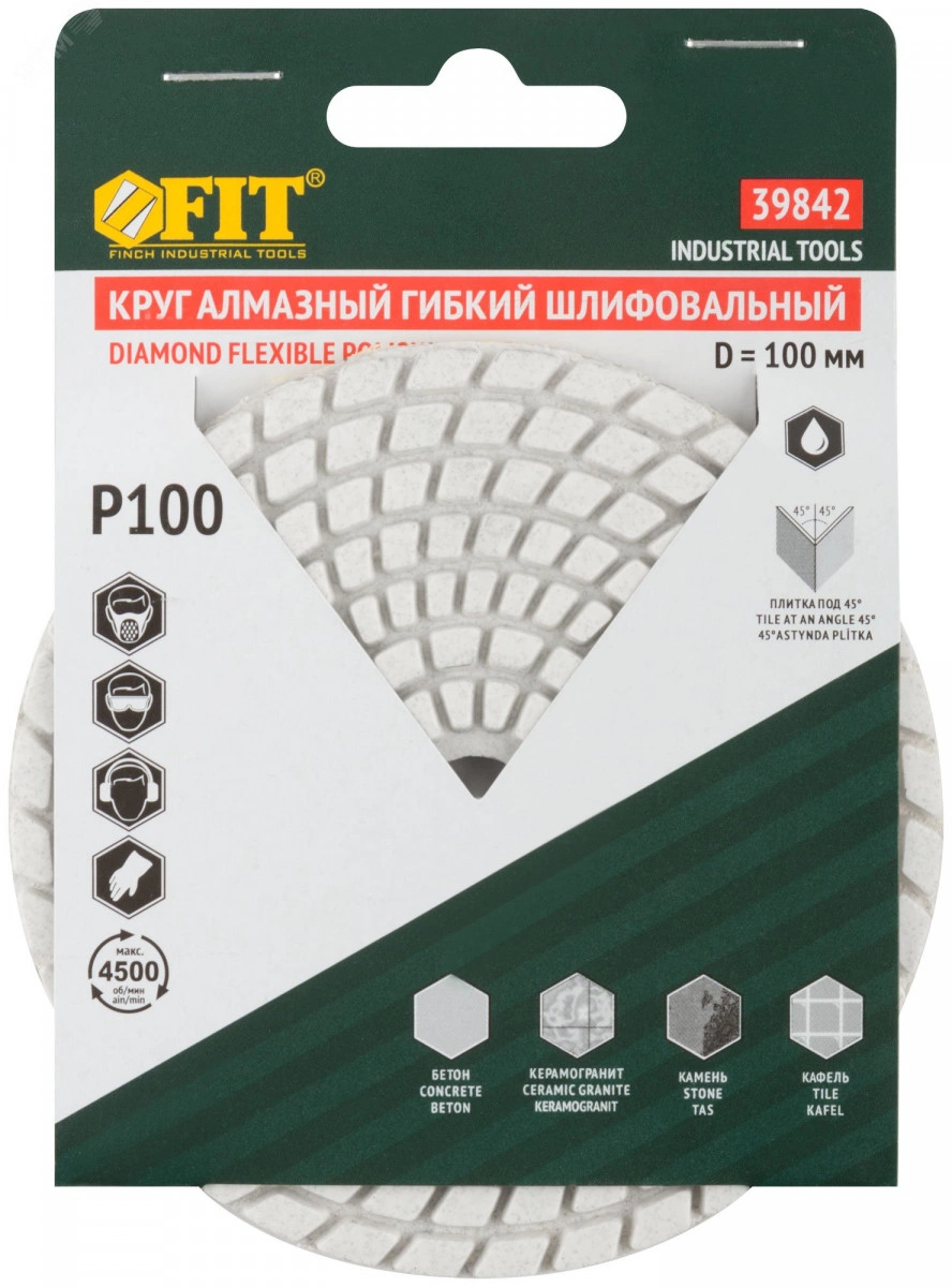Алмазный гибкий шлифовальный круг FIT IT предназначен для шлифования и полирования бетона, мрамора, гранита, керамогранита, кафеля и других изделий. Также применяется для шлифования неровных краев керамической плитки после запила алмазным диском под углом 45 градусов. При работе необходима подача воды. Используется с УШМ с регулировкой оборотов и электродрелей мощностью не менее 650 Вт. За счет высокой концентрации алмазного зерна и полимерной связки круг полностью устойчив к коррозии и обладает высокой износостойкостью. Спиральный профиль рабочей части ускоряет процесс обработки материалов. Не изменяет цвет обрабатываемого материала в процессе работы. Высокая гибкость круга обеспечивает возможность обработки изделий различных форм. Ворсовая основа под липучку позволяет быстро устанавливать круг, способствует прочному удержанию на опорной тарелке и исключает его децентровку во время работы.