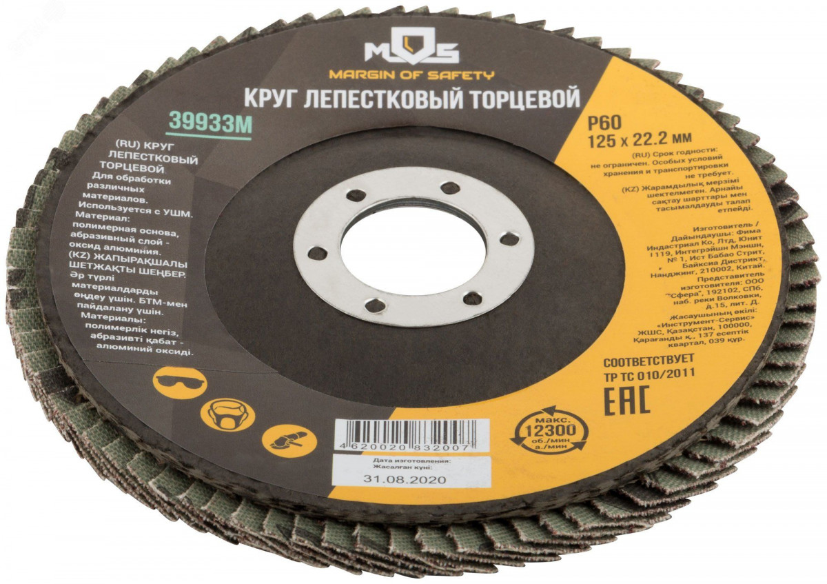 Круг шлифовальный 125х22.2 Р80 лепестковый торцевой циркониевый, Эксперт