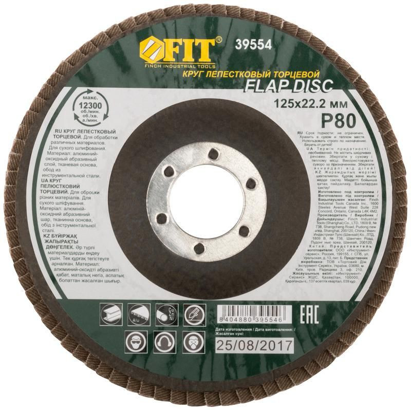 Круг лепестковый торцевой 125мм Р 80 FIT 39554