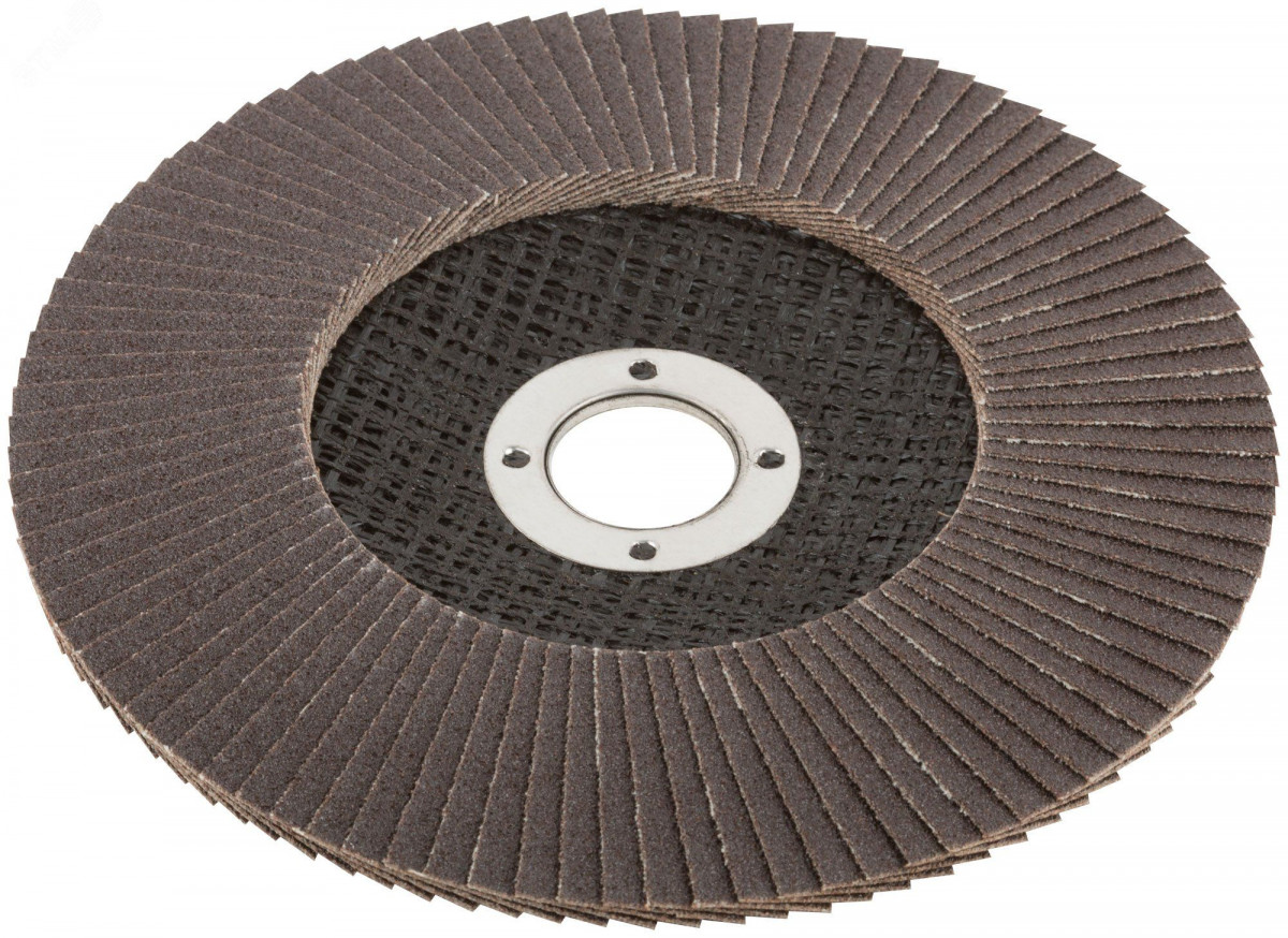 При изготовлении используется высококачественный гибкий абразивный материал состоящий из тканевой основы на которую нанесен слой кальцинированного оксида алюминия. Данный абразив имеет более твердые частицы, чем обычный оксид алюминия - Корунд, что позволяет увеличить скорость обрабатываемой поверхности до пяти раз. Наполняемость диска составляет до 96 лепестков с углом наклона 10 градусов, что позволяет увеличить КПД круга и его стойкость к износу в несколько раз. Предназначен для обработки металла и нержавеющей стали. Для углошлифовальных машин. Посадочный диаметр 22,2 мм.