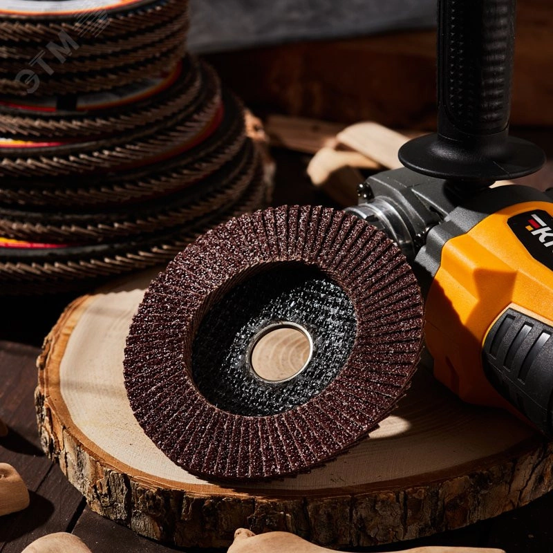 Лепестковый торцевой круг применяется совместно с ручными угловыми шлифовальными машинами (болгарками) соответствующего диаметра. Шлифовальные диски предназначены для предварительной, промежуточной и финишной обработки металла, дерева, пластика и других материалов. Конструктивная особенность кругов - веерное расположение лепестков абразивного материала, что обеспечивает плавную работу круга и отсутствие перегрева в зоне шлифования. Лепестковый круг изготовлен из шлифовальной шкурки на тканевой основе. Благодаря торцевому типу диска (T-29) увеличивается пятно контакта, что повышает скорость обработки поверхности и уменьшает возможность возникновения дефектов в виде зарезов, ям и прижогов. Тканевая основа лепестков равномерно изнашивается в процессе работы и открывает следующий слой абразива, позволяя полностью использовать ресурс круга.