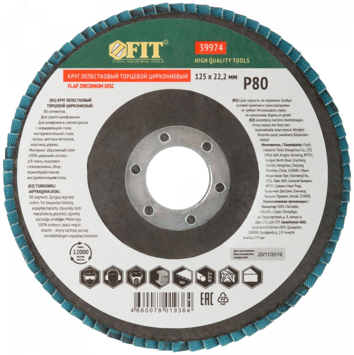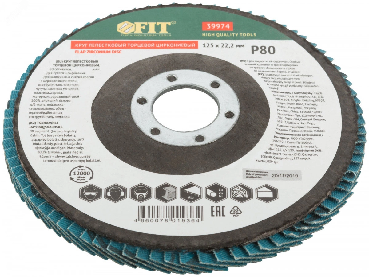 Тип 1 (Плоский). 80 лепестков. Для УШМ. Посадочный диаметр 22,2 мм. Для сухого шлифования и снятия краски с нержавеющей стали, инструментальной стали, чугуна, цветных металлов, пластика, дерева. Материал - абразивный слой - 100% цирконий, основа - х/б ткань, подложка - стекловолокно, обод - инструментальная сталь.
