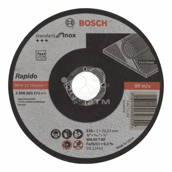 Отрезной диск Standard for Inox — надежный выбор для работ по нержавеющей стали. Диск сделан из оксида алюминия, специально разработанного для работы с нержавеющей сталью. В нем отсутствуют железистые, сернистые и хлористые наполнители. Диск используется для резки нержавеющей стали. Отрезные диски Bosch соответствуют самым высоким требованиям безопасности EN 12413. Подходит для угловых шлифовальных машин Bosch.
