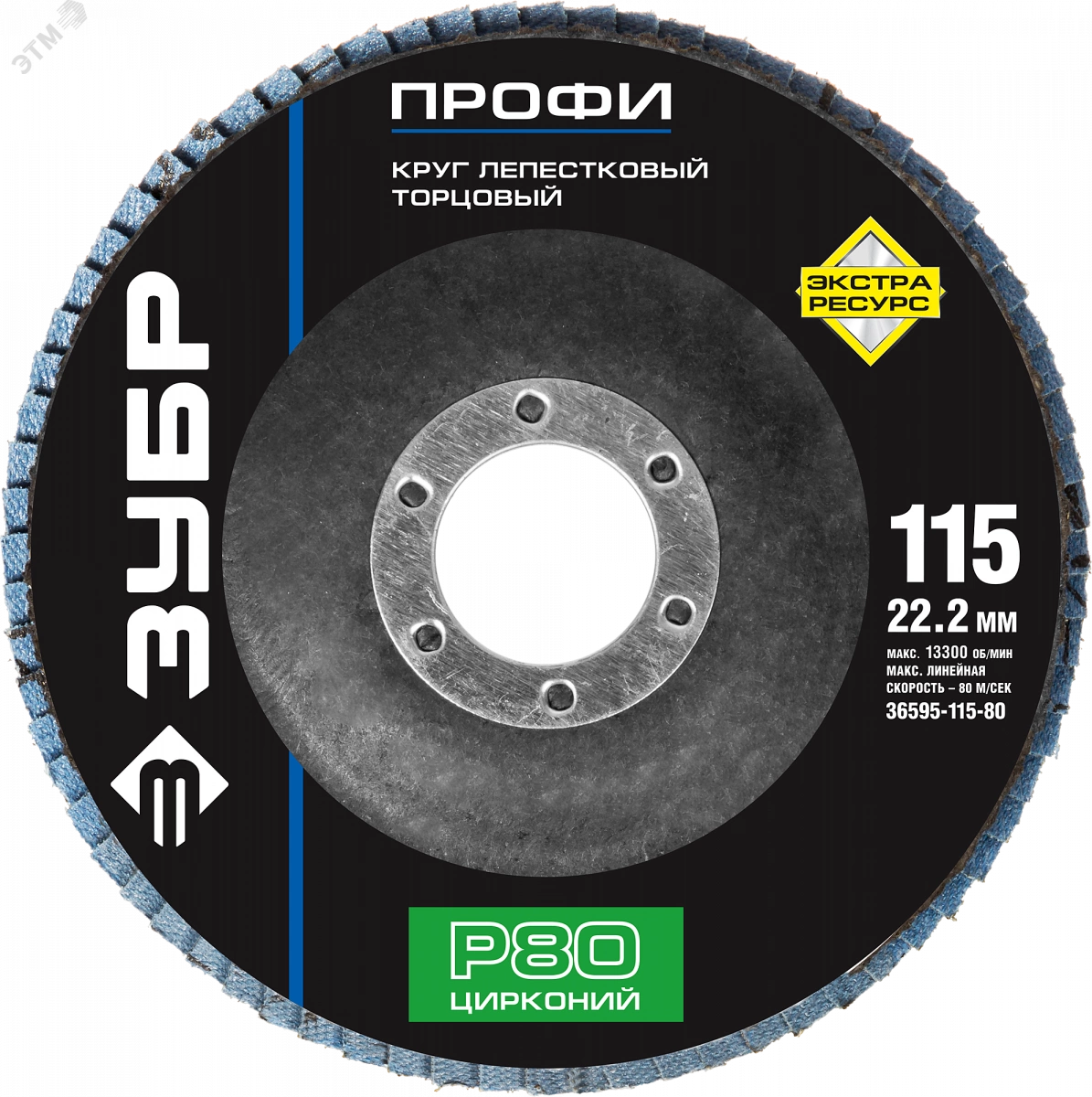 Круг шлифовальный 115х22.2 Р80 лепестковый торцевой циркониевый, Профи