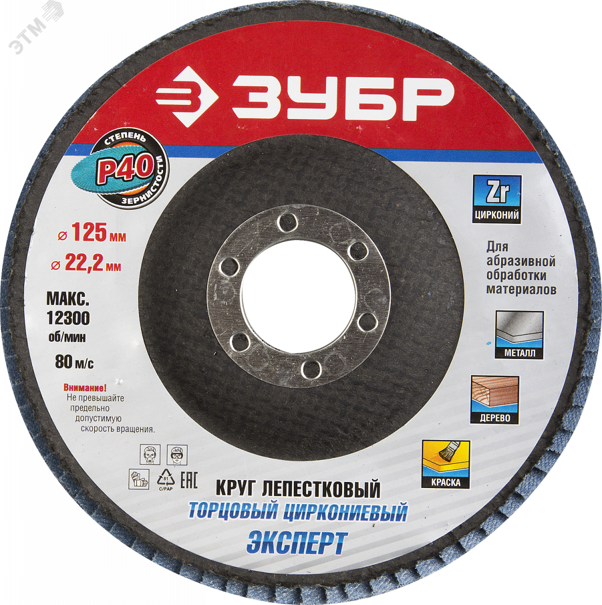 Круг шлифовальный 125х22.2 Р80 лепестковый торцевой циркониевый, Эксперт