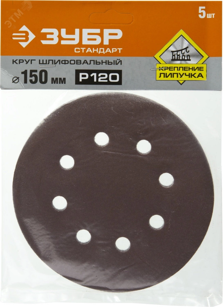 Круг шлифовальный ''СТАНДАРТ'' из абразивной бумаги на велкро основе, 6 отв., Р120, 150мм, 5шт