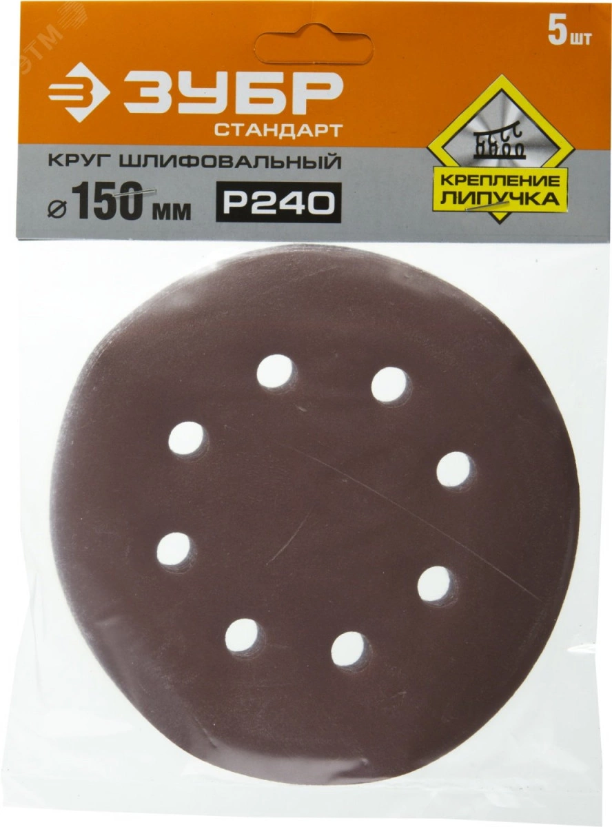 Круг шлифовальный ''СТАНДАРТ'' из абразивной бумаги на велкро основе, 6 отв., Р240, 150мм, 5шт