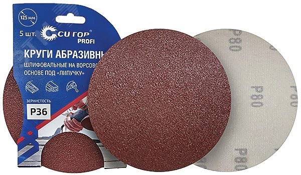 Круги абразивные шлифовальные на ворсовой основе под ''липучку'' (Р400, 125 мм, 5шт), Cutop Profi
