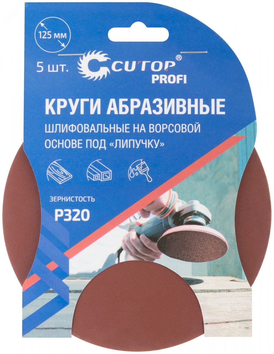 Круги абразивные шлифовальные на ворсовой основе под ''липучку'' (Р320, 125 мм, 5шт), Cutop Profi