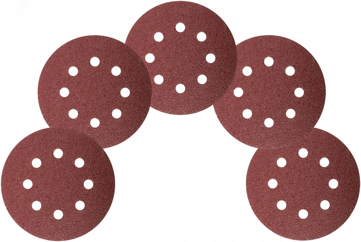 D 125 мм. Цена за набор 5 шт. На тканевой основе с липучкой. с 8 отверстиями. Для обработки плоских поверхностей. Для электрических эксцентриковых шлифмашин с пылеотводом. Материал - абразивный слой из оксида алюминия. Упаковка - картонный конверт.